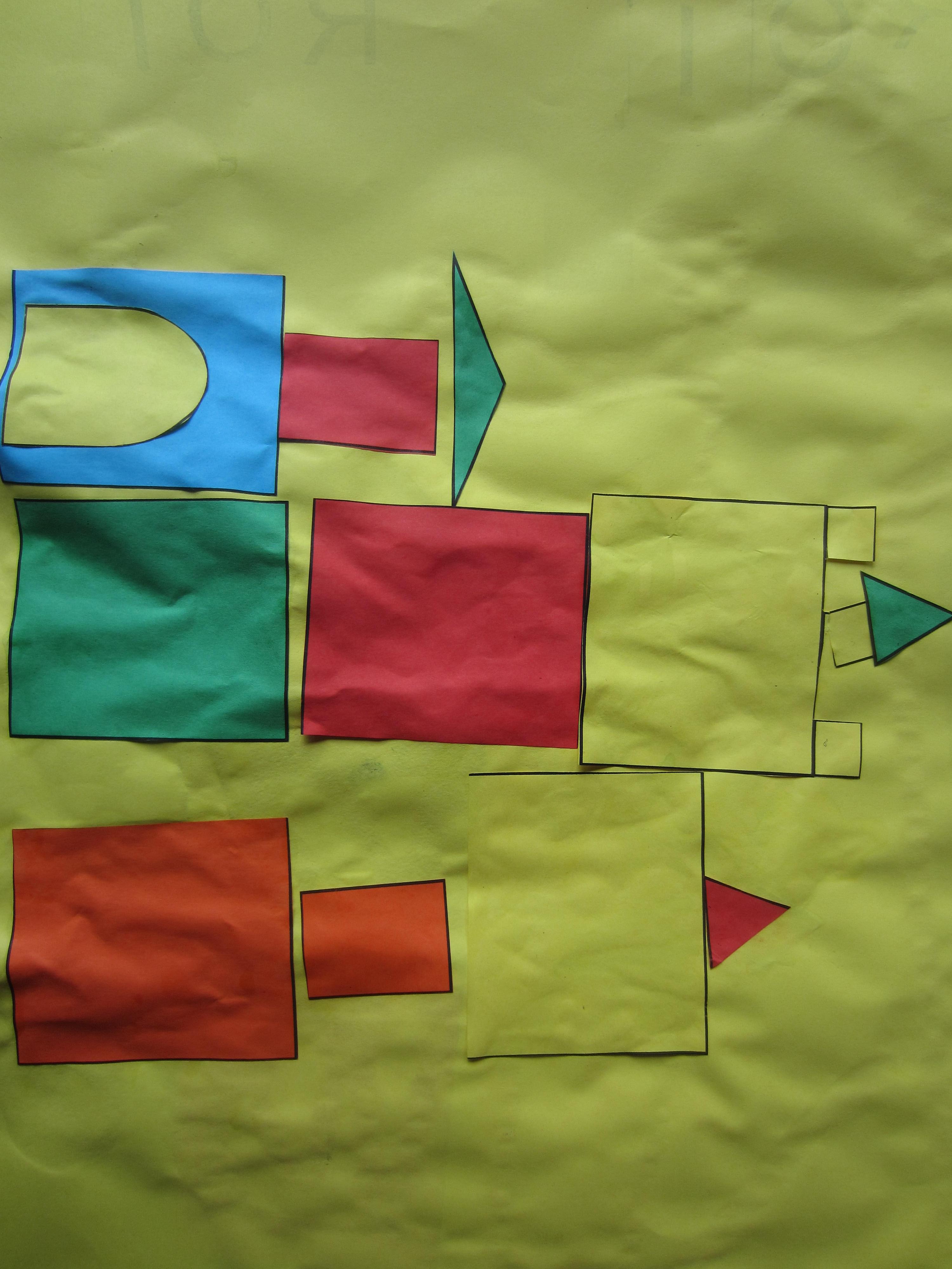 Je colle les différentes formes géométriques pour représenter le CHATEAU du Tout Petit Roi.
