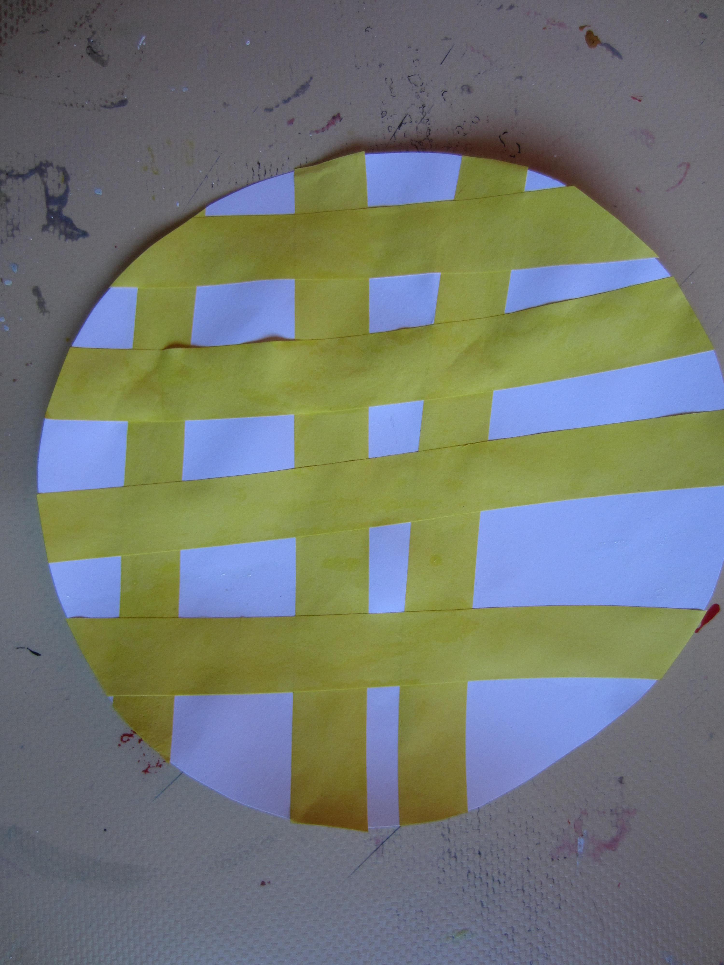 Je colle les bandes afin de réaliser un quadrillage. Je colle les bandes horizontalement puis verticalement.